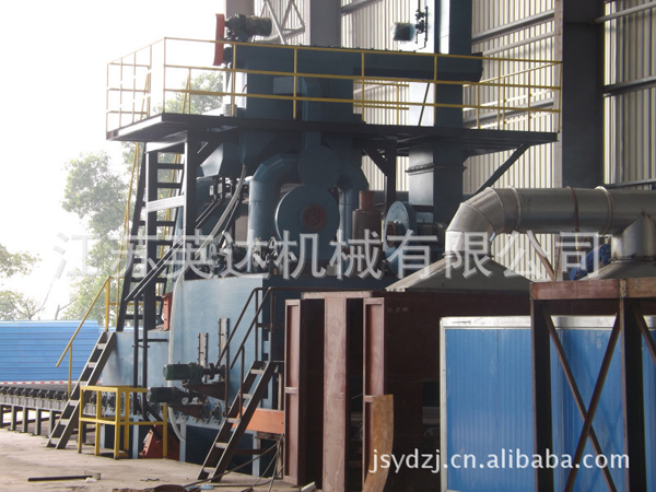 主要部件由清理室,輥道輸送機、拋丸器、彈丸循環(huán)系統(tǒng)(含提升機、分離器、縱向螺旋輸送器和供丸管道)、除塵、清掃、電氣控制等部件組成。